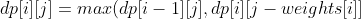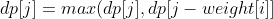 备注: 1. 唯一不同的地方在于对 j 的遍历。此处从 weights[i] 到 N+1