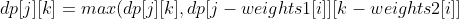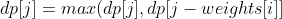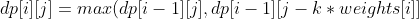 转为转移公式为, k 表示件数,(0 <= k * weights[i] <= j):
