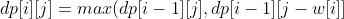 - 放入第 i 件物品,则能够达到的最大价值为放入前 i-1 件物品的最大价值加上第 i 件物品的价值,即 dp[i][j] = dp[i-1][j-w[i]] + v[i]。